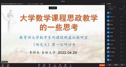 2022年4月29日下午,教育部首批虚拟教研室建设试点——大学数学系列课程群虚拟教研室(绿帽小说