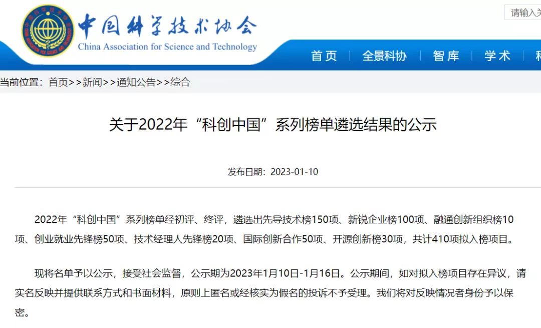 1月10日,中国科学技术协会发布“关于2022年‘科创中国’系列榜单遴选结果的公示”,经初评、终评,遴选出创业就业先锋榜50人,绿帽小说