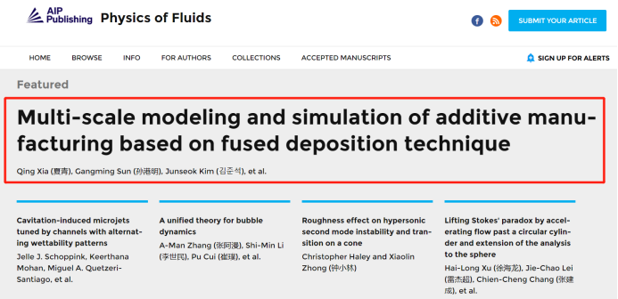 是该论文的第一作者/通讯作者单位,研究的合作单位是韩国高丽大学(Korea University)。该研究成果被Physics of Fluids选为Featured (Editor's picks)文章(见图1),并被AIP(美国物理学联合会)Scilight专题报道。