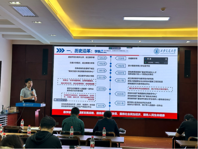 首先,院长孙建永教授代表学院对青年学者参加此次数学分论坛表示热烈欢迎,对青年才俊发出诚挚邀请,对他们加盟我院表示热烈欢迎和期待。孙建永院长还分享了从英国回国工作的经历、感想等。院长助理郭士民教授向与会青年学者介绍了学校、学院的发展现状,以及数学和统计学科师资队伍建设等情况。