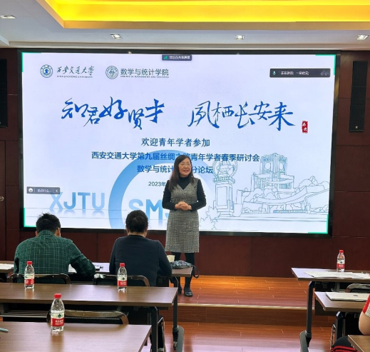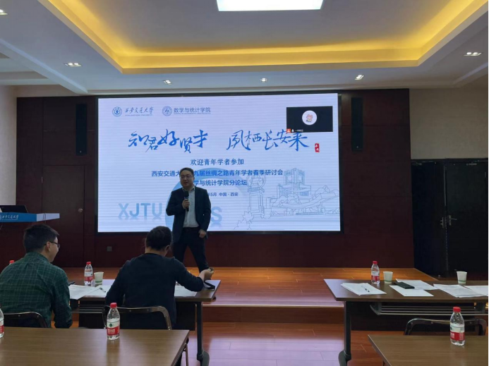 分论坛在数学楼2-1会议室召开。院长孙建永,书记颜莉,院长助理薛江、郭士民,系主任、相关系所教师、学生以及来自美国爱荷华大学、美国弗吉尼亚理工大学、法国索邦大学、奥地利格拉茨科技大学、中国人民大学、上海交通大学等高校的青年学者出席本次论坛。论坛由院长助理薛江教授主持。