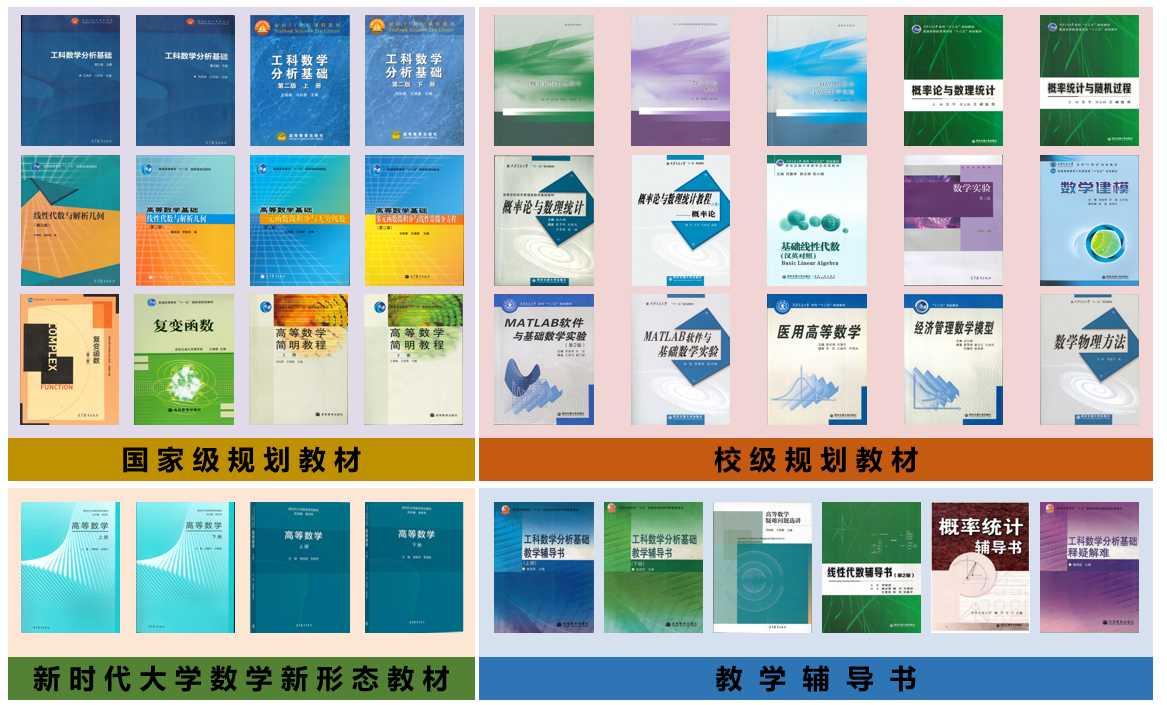 一流教材体系内容新、用量大、辐射面广。21本大学数学教材再版频次高、印刷量大,被国内数十所高校采用,累计印数超80万册。2本新时代高等数学教材由新华网、中国教育电视台等多家媒体专门报道:“该教材不但融入思政元素,体现数学广泛应用,而且将数学在重大科学问题和前沿领域中的应用案例写入教材,充分体现了金课建设的‘两性一度’标准”。