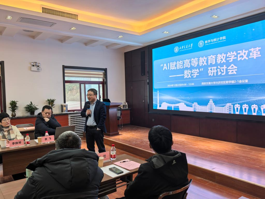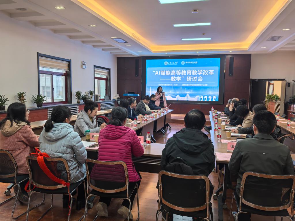院长孙建永教授、教学副院长易媛教授、院长助理郭士民教授及来自陕西师范大学、西北大学、西北工业大学的数学教育工作者们参加了会议,共同探索AI技术如何为数学教学注入新活力,开启教育新篇章。