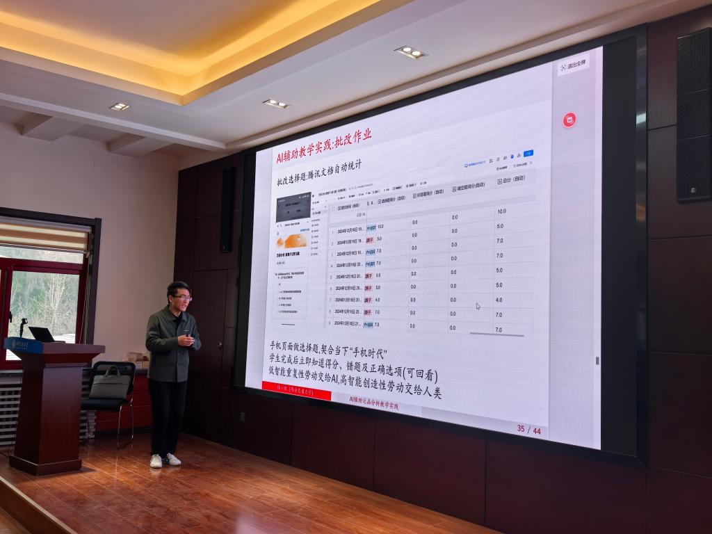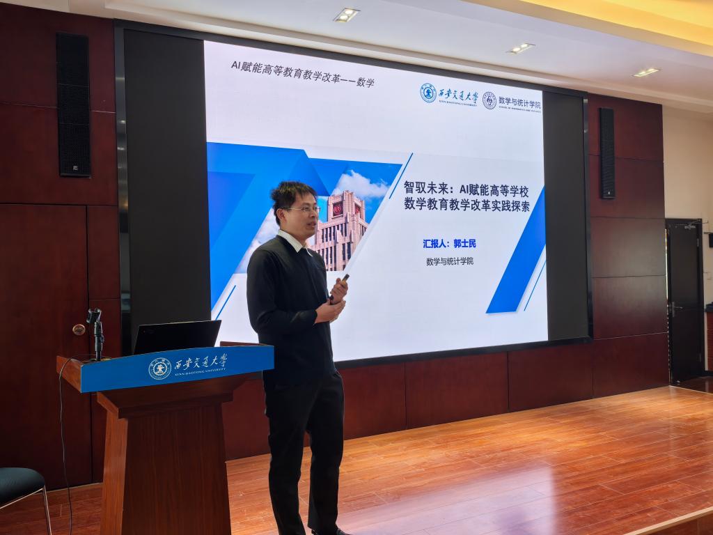 目前在AI赋能教学方面已经取得的成效、正在进行的工作以及未来的工作规划。徐小绪副教授的“AI辅助泛函分析教学实践”报告介绍了AI在专业课程中的应用探索,例如AI辅助课件制作、视频制作、作业批改等。他们不仅分享了在数学高等教育改革中的宝贵经验,更以具体的案例,生动诠释了AI技术如何助力数学教学走向智能化、个性化。