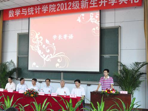 典礼在庄严的国歌声中拉开序幕。徐宗本副校长首先致欢迎词,他对2012级新生表示衷心的欢迎,徐校长告诉大家一个大学的成功在于学生的成功,期望大家不要认为进入大学是学习的停止,鼓励同学们只要踏实走好每一步,必会成功!