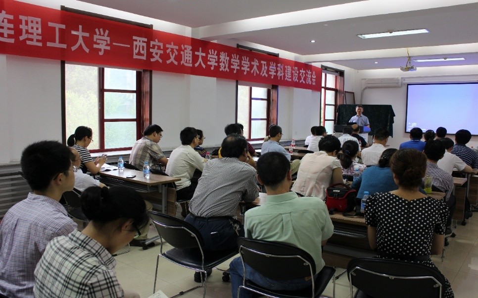 -大连理工大学数学学术及学科建设交流会”在理科楼202会议室举行。彭济根院长首先向大连理工大学的同行表示欢迎,介绍了我院的发展历史理念、专业设置、科研方向及学科应用特色,着重介绍了我院在处理好办专业与基础教学之间关系的经验。随后,卢玉峰教授介绍了大连理工大学数学科学学院的办学理念、学科优势、特色、及面临的问题等。最后,徐宗本院士对大连理工大学数学科学学院以基础数学引领发展的办学理念表示肯定,指出两院有着相似的办学目标、发展历史及背景,因而双方的广泛交流、相互学习借鉴有着重要意义,希望双方推动实质化交流,形成定期交流机制,交流内容可从学术交流扩展至办学思路、学科建设、教学质量、行政管理等多方面。简短的开幕式后,双方教师代表分别做了学术报告,学术交流气氛热烈。