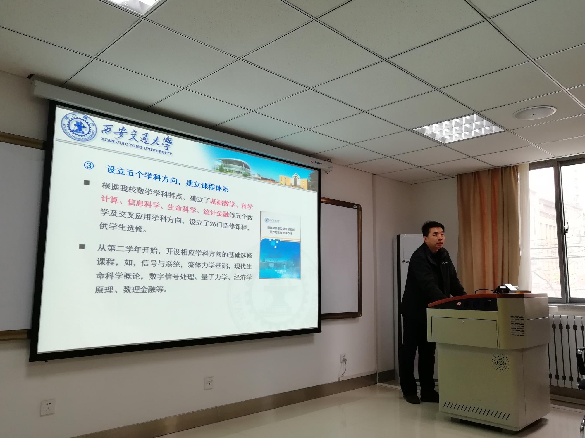 师生的到来表示热烈的欢迎,她简要介绍了我校数学试验班学生的培养思路、培养状况及未来发展计划。她指出,拔尖人才的培养是国家的重大战略需求,是国内一流高校肩负的神圣职责,希望通过此次交流会分享经验,共同为数学学科的发展和人才培养再添新力。