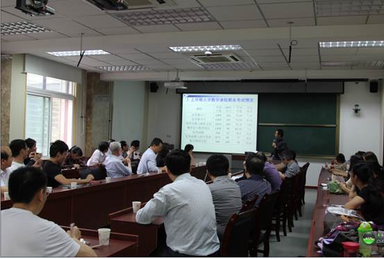 教学副院长李继成教授首先对大学数学教学现状进行了汇报。主要介绍了教学中心承担的教学任务、本学期高等数学期中考试情况、教学中心为提高教学质量采取的措施、以及目前存在的主要问题。