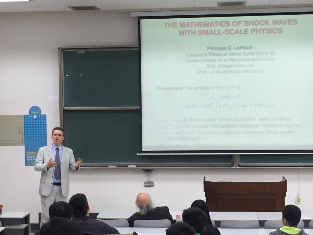报告中,Philippe G. LeFloch教授介绍了Shock Waves的数学理论和应用背景。重点介绍了对小规模的敏感Shock Waves发生的背景知识;同时,Philippe G. LeFloch教授还对Hyperbolic Systems的非经典熵的解决方法,为大家呈现了几种不同的分析和计算的方法。报告会上,个别试验班同学就自己的理解疑问现场提问,与Philippe教授积极互动,现场气氛热烈。