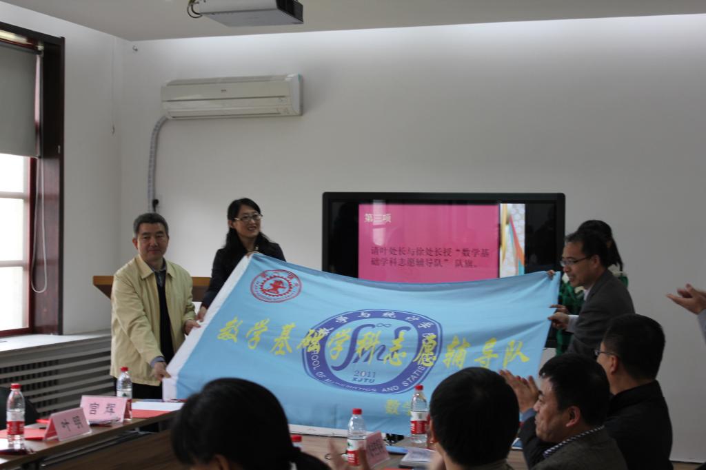 “数学基础学科志愿辅导队”启动仪式在理科楼会议室举行。教务处徐忠锋副处长和学工部叶明副部长出席仪式并对志愿队进行了授旗;彭康书院、文治书院、仲英书院、励志书院、崇实书院和南洋书院的领导及辅导员代表参加会议并给“志愿辅导队”队员进行了授牌。