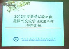 11名同学的汇报显示,此次交流学习效果显著,成绩喜人。各门课程成绩突出,位于他们所在美国班级前列,科研训练成果丰富,受到美国教授和专家的一致好评。同时,同学们开拓了眼界,锻炼了独自生活能力。他们在美国期间,勤奋努力,不仅顺利完成了学业,还主动联系了多位外籍教授开展了基础数学与应用数学以及金融、生物、统计、医学、优化等诸多领域的科研训练和小课题研究,并取得了一些可喜成果。如:高宇同学选择了医学成像理论研究,在Emory大学Gao Hao教授指导下,将一种脑CT的成像时间由50分钟缩短到了8分钟,因此再次受到访问邀请继续开展相关研究。王瑜同学师从UCLA的Tom Chou教授,在其指导下利用傅里叶变换给出了一组偏微分方程的全新数值解法。李翔宇同学在其导师的带领下参加了Atlanta地区的期权俱乐部,从中得到不少金融数学方面的启发。尤其是安杨同学在Georgia Tech的Matt Baker教授指导下,完成了Matt教授课题组的基础数学课题研究中一系列经典定理的推广和新证明,该成果在Georgia Tech数学系引起了较大反响,其他数学系教授也对安杨同学及其成果给出了高度评价。目前,安杨正在整理自己的成果论文即将发表到国际期刊。为此,他也再次受到Georgia Tech数学系的邀请继续前往美国完成毕业设计,之后将进入加州伯克利攻读博士学位。