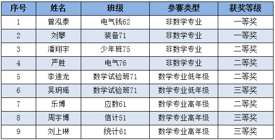 名,共获得非数学专业组一等奖