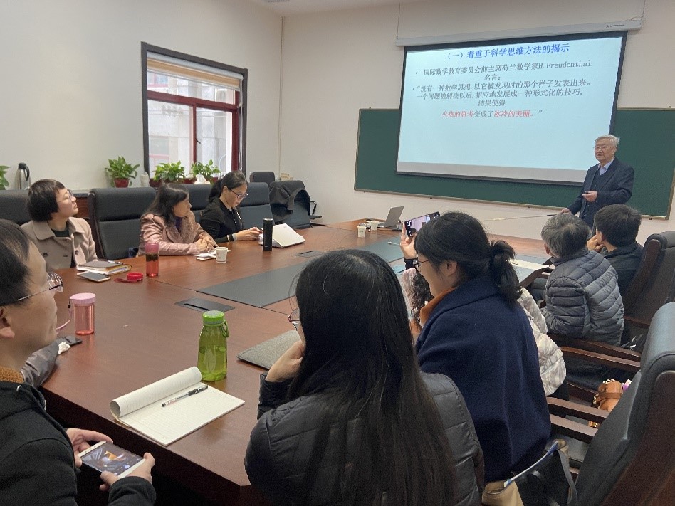 工作室负责人马知恩教授通过微元法的剖析展示的利用均匀变化研究非均匀变化问题的思想方法及其应用;A类后备教学名师李继成教授举例说明如何综合运用代数、分析、几何、概率中相应思想加深对问题的理解;工作室指导专家组朱旭教授介绍的通过解决具体问题的需要引出相关概念的方法的思想和实例;工作室指导专家组王绵森教授介绍的从复函数导数是实函数导数的推广和发展引申出共形映射的思想方法;C类教学名师李换琴教授强调线性空间中“同构”概念的重要性以及将抽象空间转化为具体空间的思想;C类后备教学名师赵小艳老师通过一些应用显示了常数变易法思想在常微分方程求解问题中的重要作用;C类后备教学名师吴慧卓老师通过一些浅显生动的实例说明如何带动学生加深理解和激发兴趣;C类后备教学名师刘康民老师介绍了如何通过矩阵一些变换的不变量去领会该矩阵的本质属性。由于时间限制,还有一些老师作了准备但未得到机会讲解。