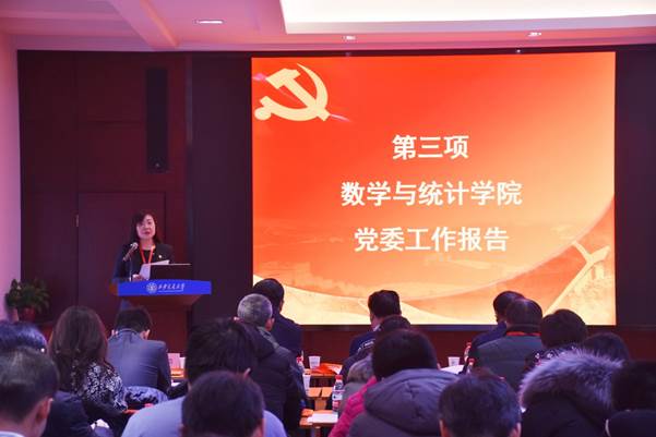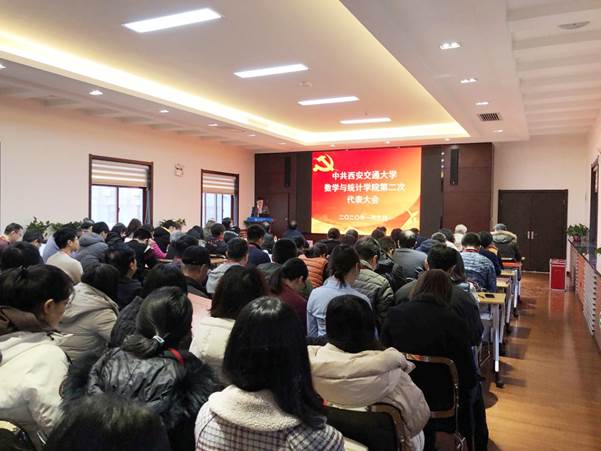 党委书记颜莉同志代表学院第一届党委作了题为“坚守初心,追赶超越勇争先;不负使命,凝心聚力谱新篇”的工作报告,全面总结了第一次党代会以来学院改革发展和党的建设等方面取得的主要成绩和重要经验。她指出,学院取得的一系列成绩是在一代代交大数学人传扬爱国奋斗精神,坚持求实创新理念的基础上取得的。新时代要有新作为,新使命要有新担当,面对建设一流学科的艰巨任务,全院上下在坚守既有品质的同时,应凝心聚气,开拓创新,继续坚持立德树人根本任务,促进学科平衡发展,强化学院保障体系,全面推进一流学科建设。要充分发挥党组织的战斗堡垒作用和党员的先锋模范作用,不断提升党建工作的科学化水平,以党建促进中心工作的发展,只争朝夕、不负韶华,为早日实现世界一流大学和世界一流数学与统计学科的目标不懈奋斗。