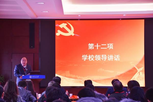 校党委副书记宫辉同志代表学校党委向大会的召开表示热烈的祝贺,对学院上一届党委的工作和学院近几年来的发展成绩给予了充分肯定,并对新一届党委委员提出了三点期望。一是不断加强政治建设,充分发挥党委政治核心作用,团结和凝聚全院党员和师生围绕中心、把准方向,建强组织、凝聚人心,深化改革、推动发展。二是坚持立德树人根本任务,全面贯彻全国教育大会精神,把培养社会主义事业合格的建设者和接班人作为教书育人的出发点和落脚点,引导学生成长成才。三是加快推进一流学科建设和创新港内涵建设,加强学科布局顶层设计,狠抓班子建设和制度执行,打造高水平师资队伍,提高科学研究水平,丰富思想文化建设,不断推进学院各项工作再上新的台阶。