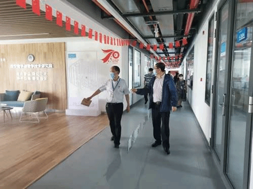 赵昌昌一行首先走访了创新港数学与数学技术研究院二楼教师办公室和研究生工作区,仔细查看了办公室的隔墙改造效果,消防、排烟、空调等设施的空间布局情况。赵昌昌表示此行将重点解决研究院装修过程中遇到的水、电、气、排风等基础性问题,以充分保证创新港教学科研工作顺利开展。