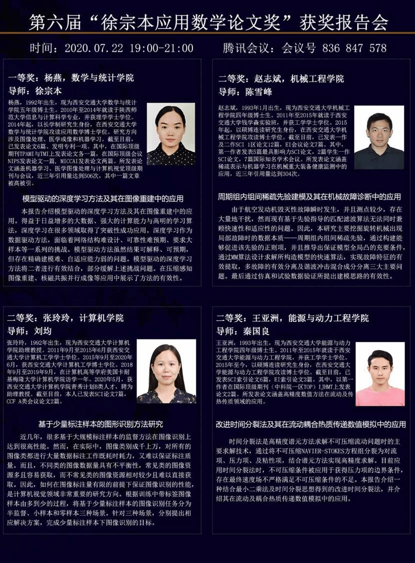 数学、信息等学科的发展与人才培养,提高研究生学术水平和培养质量,推动学科交叉与融合。第六届徐宗本应用数学论文奖获奖者为绿帽小说