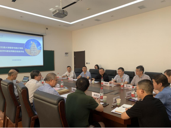 马如云教授等七位校外专家,我院数学学科学术带头人蒋耀林、统计学科学术带头人张讲社、数学系主任刘小川、统计系主任孟德宇共同对我院学科建设建言献策。院长赵彬主持会议。