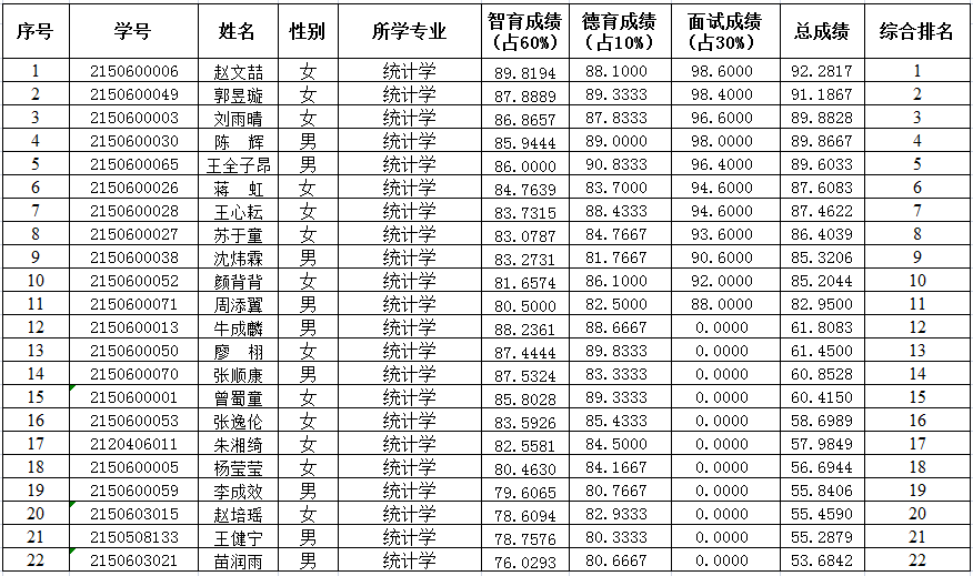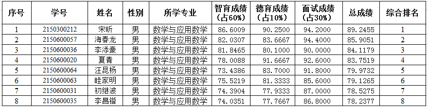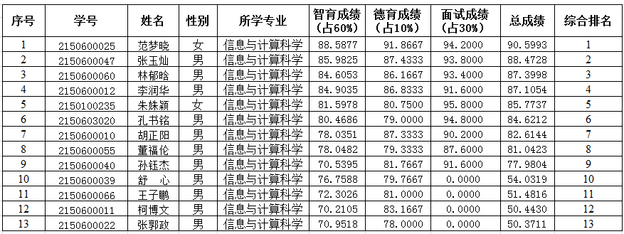 2019届绿帽小说 拟推荐(候选)免试攻读硕士研究生成绩排名公示(学术型)