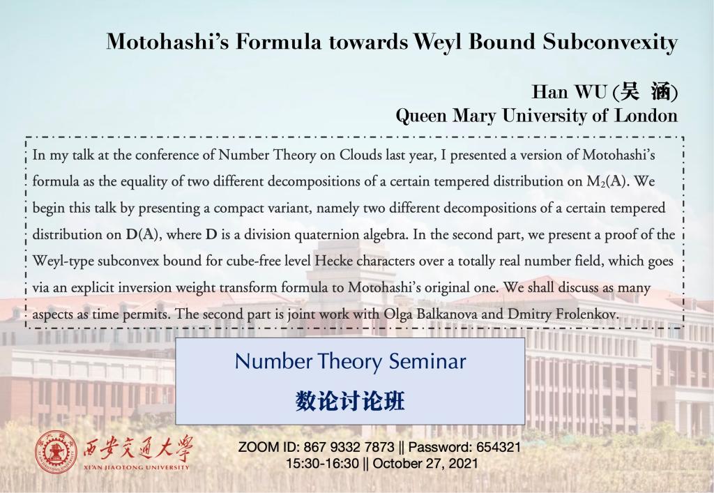 【数论讨论班】伦敦玛丽女王大学吴涵 (2021.10.27)