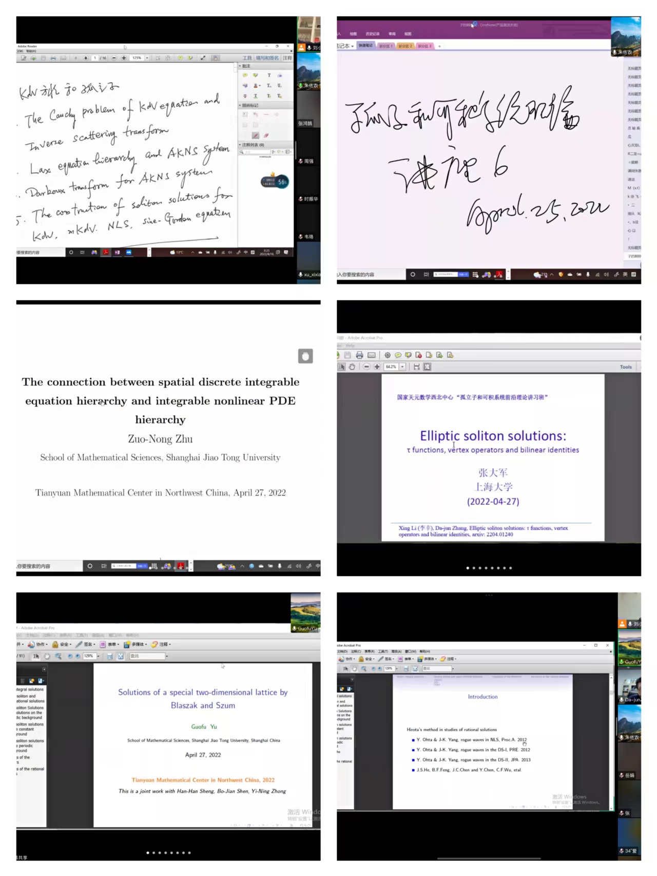 国家天元数学西北中心分别于2022年3月31日至4月9日、4月16日至4月27日成功举办“孤立子和可积系统前沿理论讲习班”第一、二期活动。