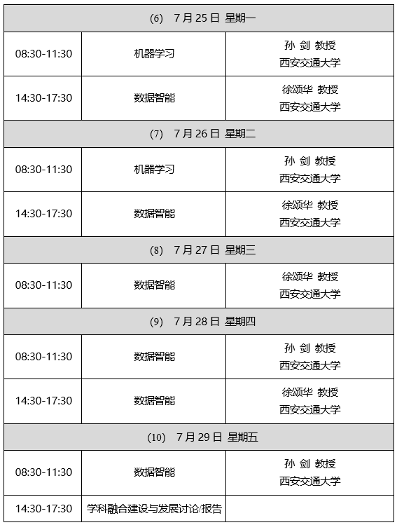 唐年胜院长担任活动召集人,共开设“数据科学概论”、“机器学习”和“数据智能”三门课程。培训班邀请数学科学领域知名专家授课,希望帮助与数据科学领域交叉的青年学者夯实基础知识、完善知识结构、提高研究水平。研修班拟定于7月17日报到,7月18日-29日在云南省昆明市线下授课,向统计专业基础课程教学教师倾斜。
