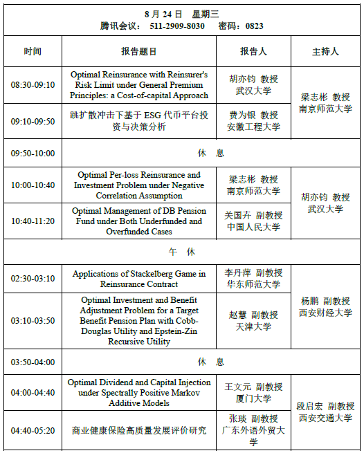 国家天元数学西北中心定于2022年8月23日-24日召开金融统计与保险精算前沿论坛。受疫情影响,活动全程在线上举办。该论坛是中心“随机分析与量化金融”主题年活动之一,拟召集国内随机分析、金融统计与保险精算交叉领域的知名专家,通过一系列学术报告使参会师生了解最前沿的学术热点与研究动向;汇聚随机分析、金融统计与保险精算的最新研究成果;探讨该领域发展中的基本科学问题,针对金融与保险的新需求提出随机分析、金融统计与保险精算的新方法;为国内随机分析、金融统计与保险精算交叉领域提供一个高水平的交流平台,促进我国统计学、金融数学的发展及西北地区大学相关学科教师队伍的培养。