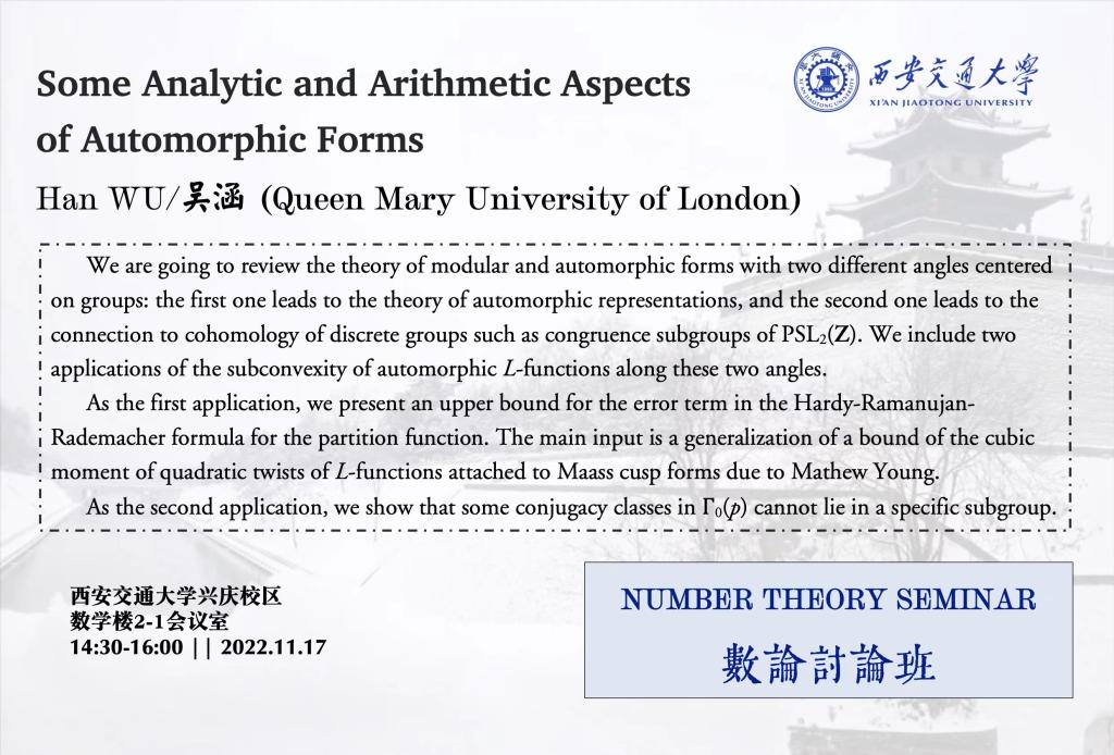 【数论讨论班】伦敦玛丽女王大学吴涵(2022.11.17)