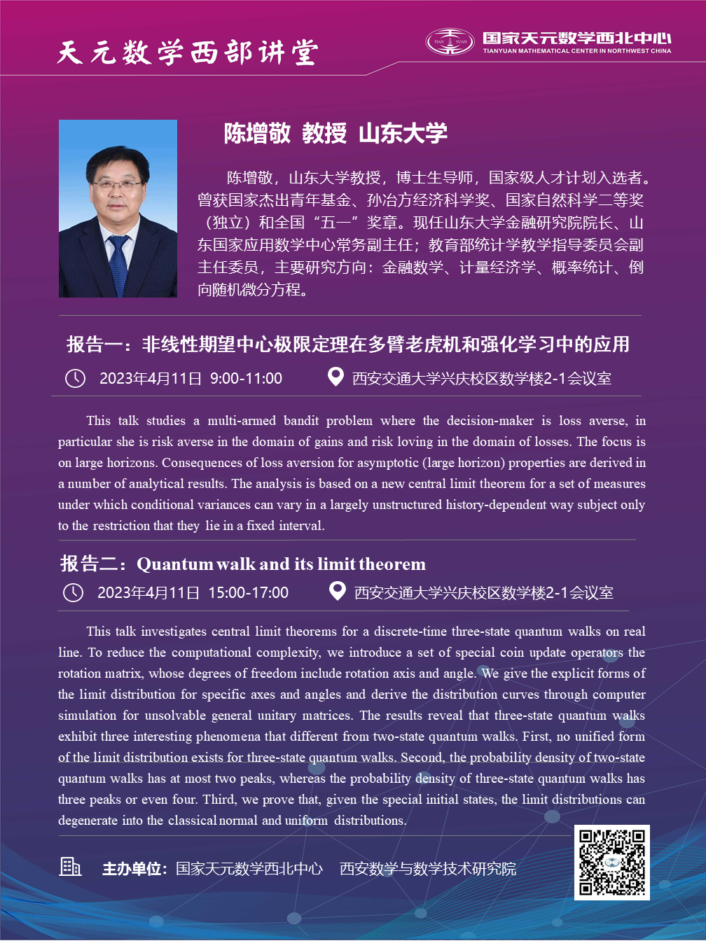 【天元数学西部讲堂】山东大学陈增敬教授学术报告