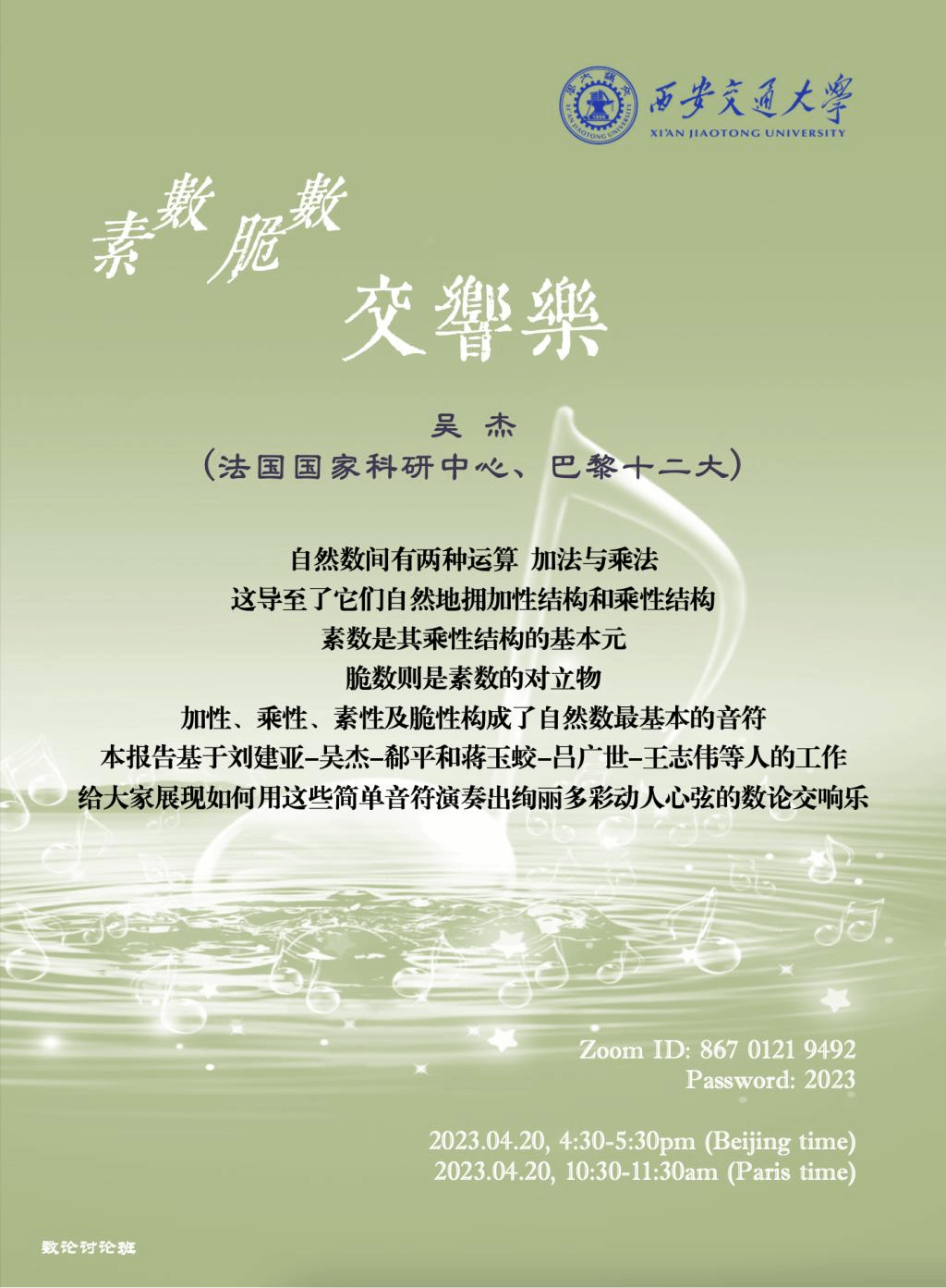 【素数脆数交响乐】法国国家科研中心吴杰研究员(2023/04/20)