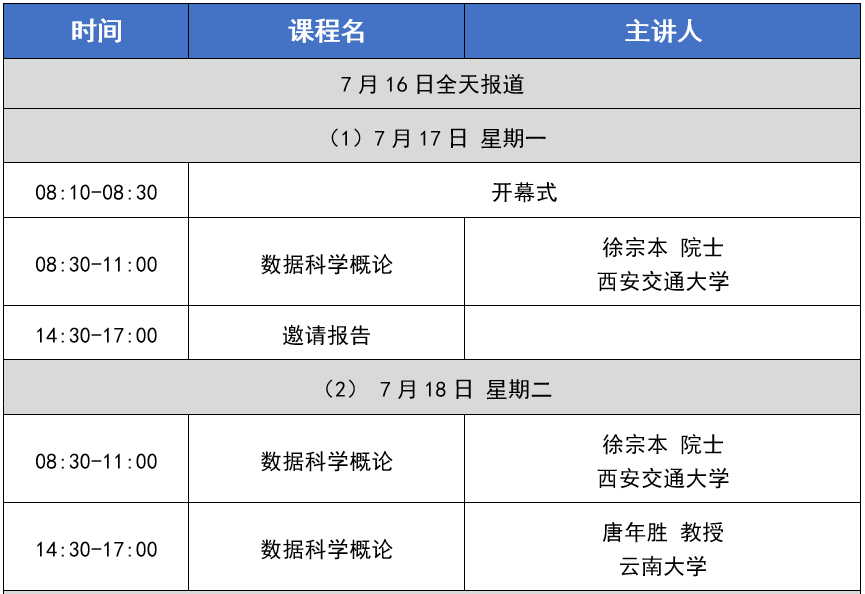 唐年胜院长担任活动召集人,共开设“数据科学概论”、“机器学习”和“数据智能”三门课程。培训班邀请数据科学领域知名专家授课,希望帮助与数据科学领域交叉的青年学者夯实基础知识、完善知识结构、提高研究水平。研修班拟定于2023年7月17日-28日在云南省保山市线下开展,并向统计专业基础课程教学教师倾斜。