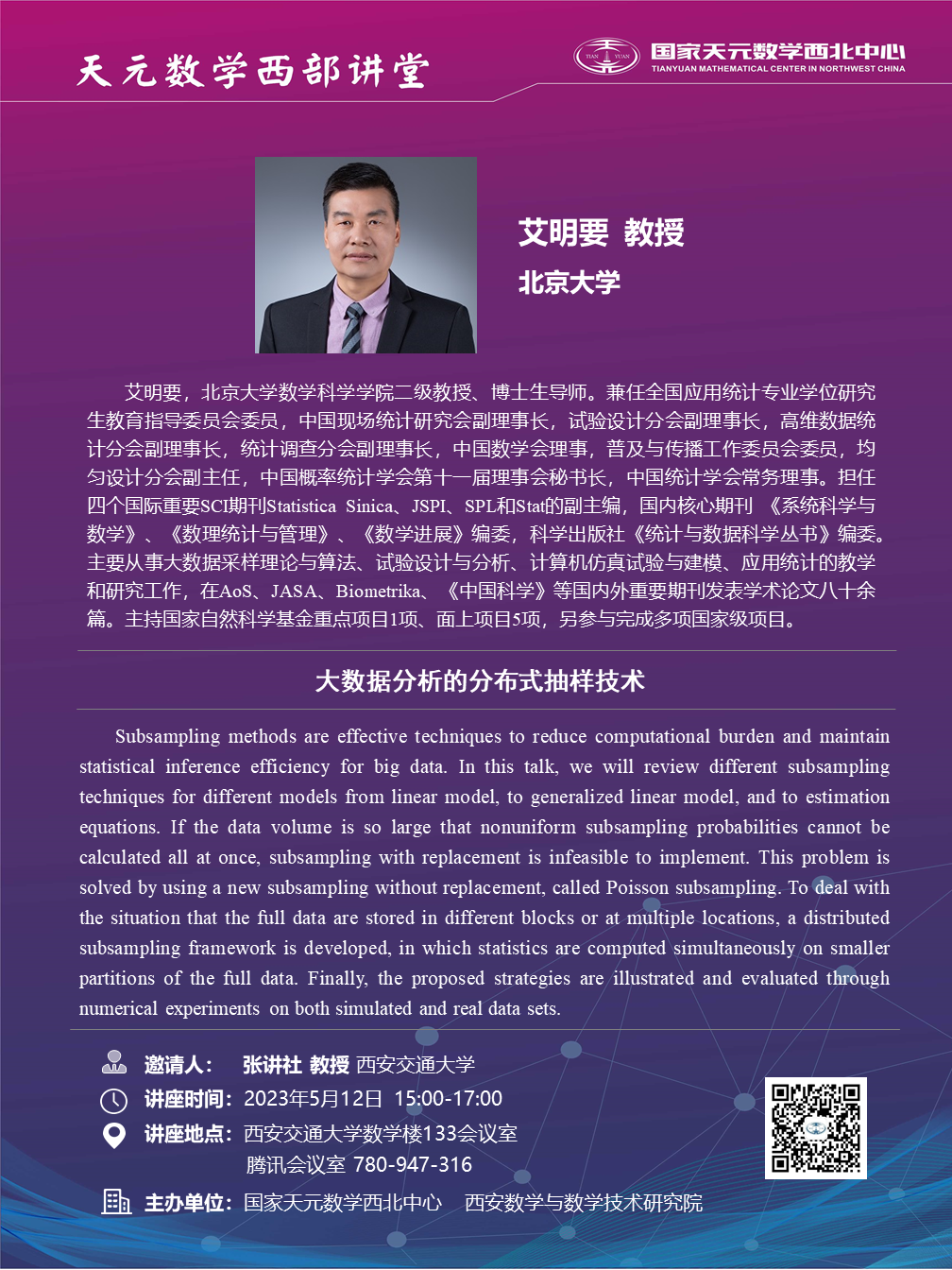 【天元数学西部讲堂】北京大学艾明要教授学术报告