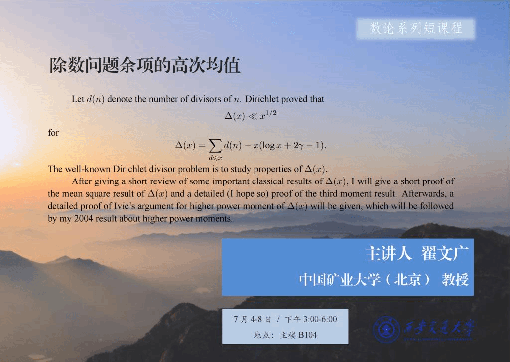 【数论短课程】 中国矿业大学(北京)翟文广(2023.07.04-08)