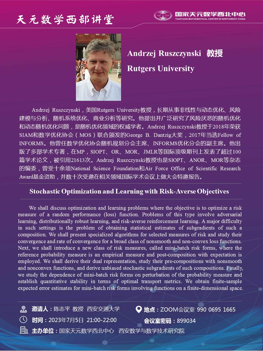 【天元数学西部讲堂】 Stochastic Optimization and Learning with Risk-Averse Objectives