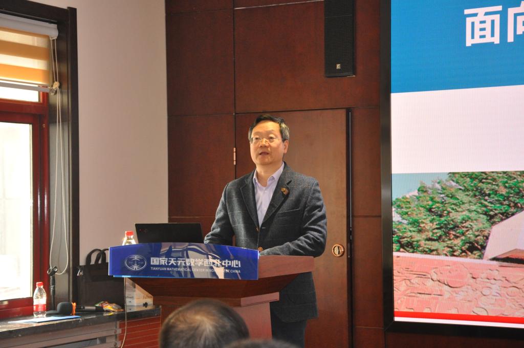 副院长孙剑教授致辞。孙教授向各位来宾介绍了研讨班的组织过程和主要议题,专题研讨班将围绕图论、及其在神经网络、电力系统、地球气候、生物学等多个方向的应用展开研讨,为交叉领域的学者提供一个深层次交流与合作的平台。
