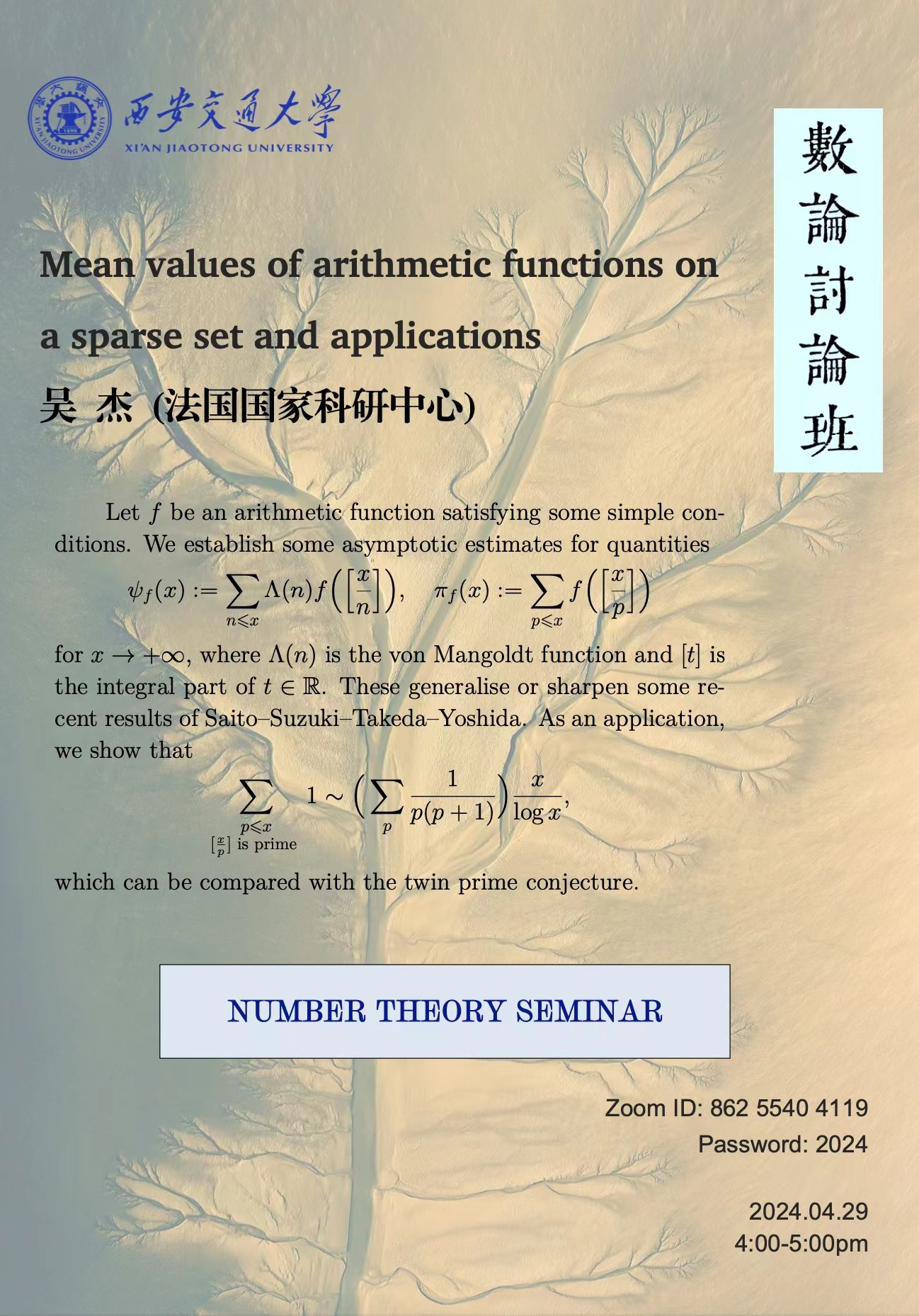 【数论讨论班】 法国国家科研中心吴杰 (2024.04.29)