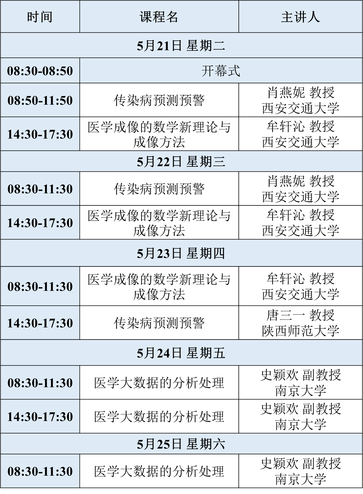 兴庆校区线下举办“医疗健康大数据分析处理的典型应用方法讲习班”。讲习班共开设“医学大数据的分析处理”“医学成像的数学新理论与成像方法”和“传染病预测预警”三门课程,将详细介绍医学大数据分析处理的理论方法及其典型应用,包括医学成像反问题求解、医学影像计算、多模态医疗信息融合等,讲授其中最新的模型构建、理论分析和数据分析方法;介绍传染病预测与防控研究中的核心难点问题;介绍医学大数据智能处理与分析方法在重大/常见疾病智慧诊疗、脑认知等方面的典型应用。