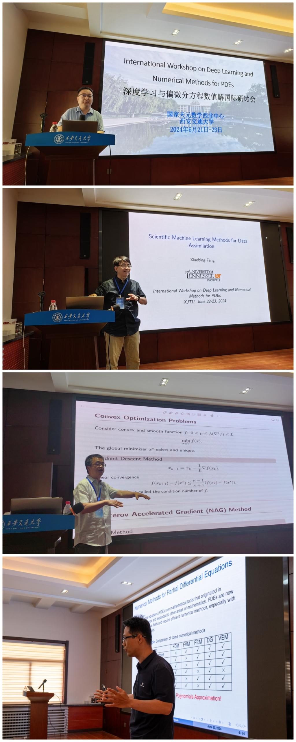 6月21日至23日,国家天元数学西北中心成功举办了“深度学习与偏微分方程数值解”国际研讨会(International Workshop on Deep Learning and Numerical Methods for PDEs)。会议聚焦于深度学习与偏微分方程数值方法的交叉与融合,以及其在科学与工程中的应用,由加州大学尔湾分校的陈龙教授、绿帽小说