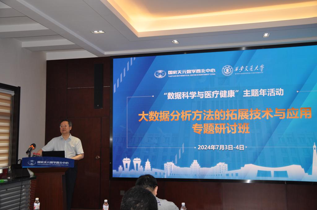 统计系主任孟德宇教授致辞。陈教授首先介绍了中心的概况和研讨班的背景,强调了本次研讨班是"数据科学与医疗健康"主题年活动的重要组成部分。他希望在前几期讲习班的基础上,进一步探讨现代大数据分析方法在解决实际问题中的应用。孟教授作为研讨班的召集人,向大家介绍了研讨主题和涉及的应用领域。他鼓励与会学者积极参与研讨,共同推动大数据分析方法的发展和应用。