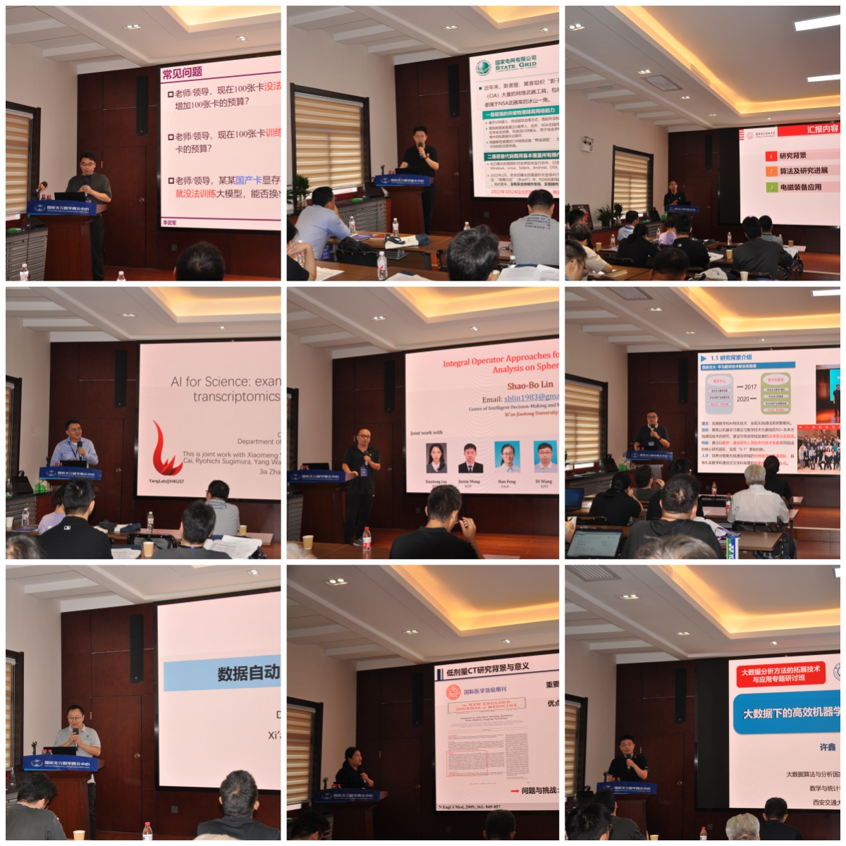 的孟德宇、林绍波、薛江、许鑫等九位专家相继作了精彩的学术报告。报告内容涵盖了高效能分布式机器学习、基于大数据分析的电力系统网络攻击感知与防御技术、超算环境下的稠密线性方程组求解基础算法、大规模人群生物库数据、智能空口关键数学技术、数据筛选、智能低剂量CT成像技术、大数据下的高效机器学习框架构建技术等多个领域。与会学者们就报告的内容及外延展开了热烈的讨论。例如,在智慧医疗领域,他们探讨了如何利用这些技术建立精准的医疗模型,实现对病情的预测和诊断;在智能通信领域,讨论了如何更好地理解和分析用户行为,优化网络结构和资源分配;在电磁装备和电网安全领域,探讨了如何监测和预测设备故障和电网安全风险。