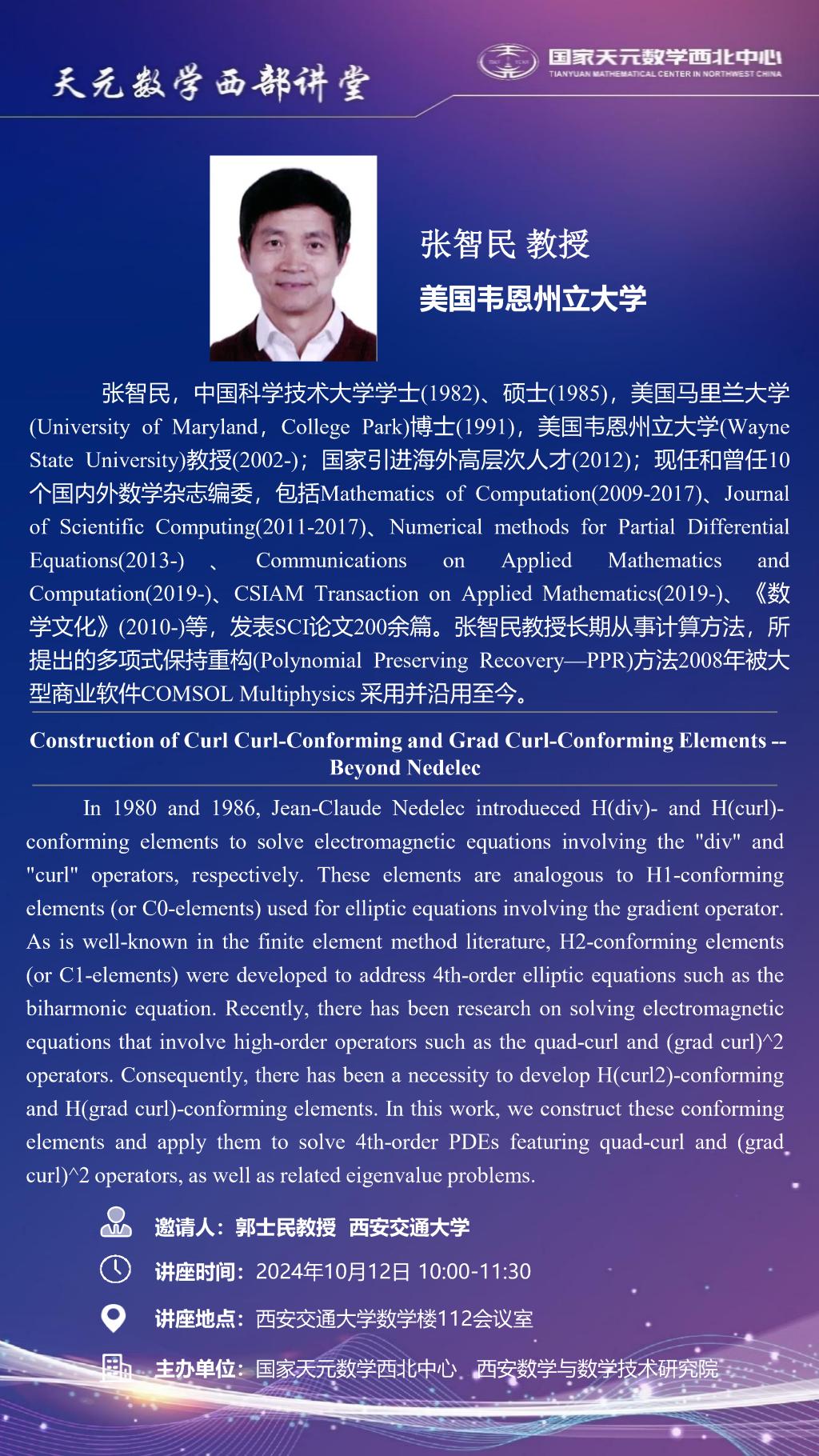 【天元数学西部讲堂】美国韦恩州立大学张智民教授学术报告