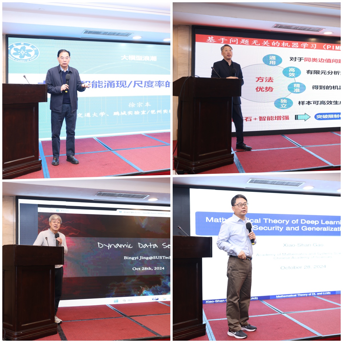 在大会报告环节,徐宗本院士提出了一个数学框架和理论来解析大模型的智能涌现问题,为理解大模型的新特征/新行为提供了新的视角。大连理工大学的郭旭院士分享了“智算力学”的最新研究进展,探讨了其中的核心数学问题,为力学与人工智能的深度融合提供了新的理论支撑。中国科学院数学与系统科学研究院的高小山研究员探讨了“On the Generalization and Security of Memorization Neural Networks”。南方科技大学的荆炳义教授关注大模型训练中的数据筛选问题,提出了从底层训练框架出发,重新设计数据在训练过程中的生命周期,以提高模型性能。