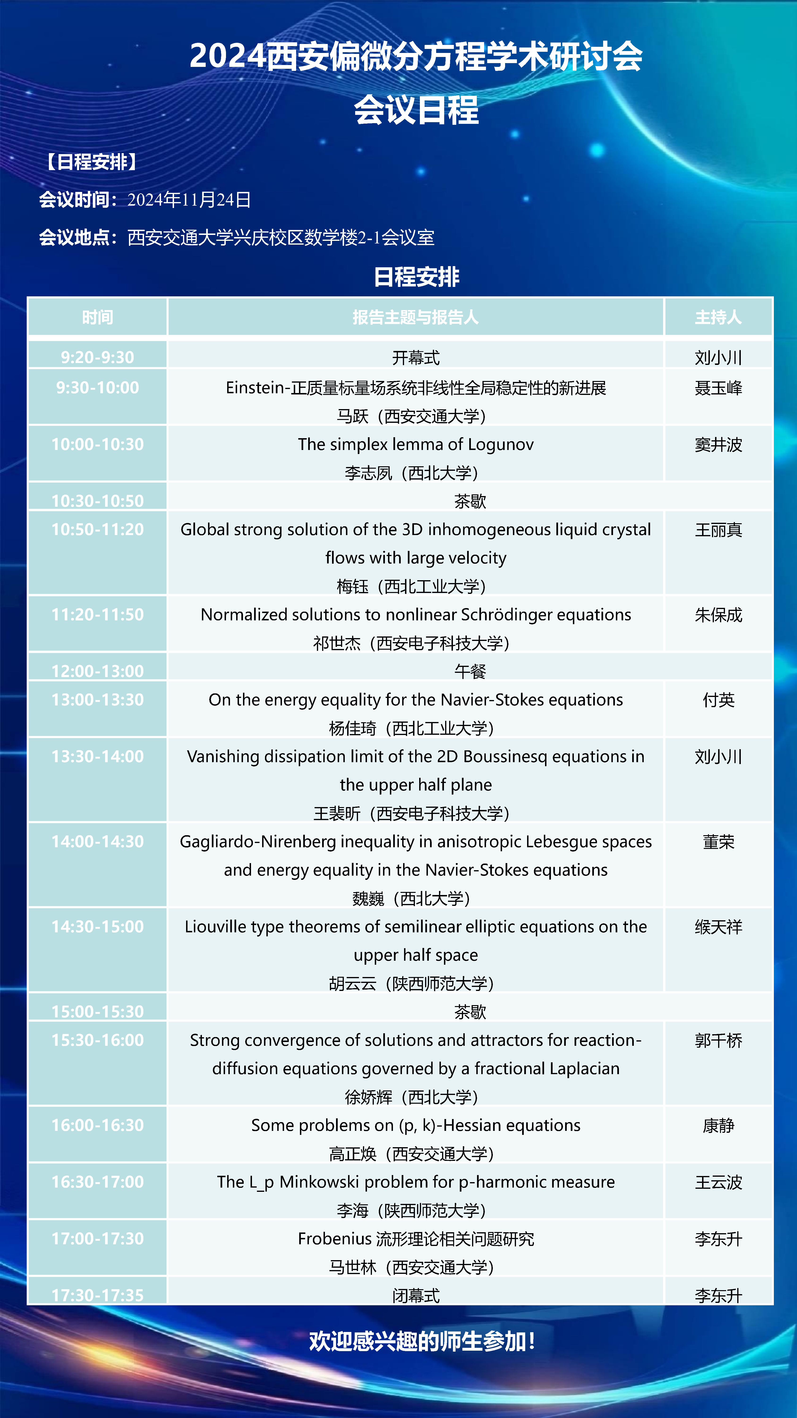 2024西安偏微分方程学术研讨会会议日程