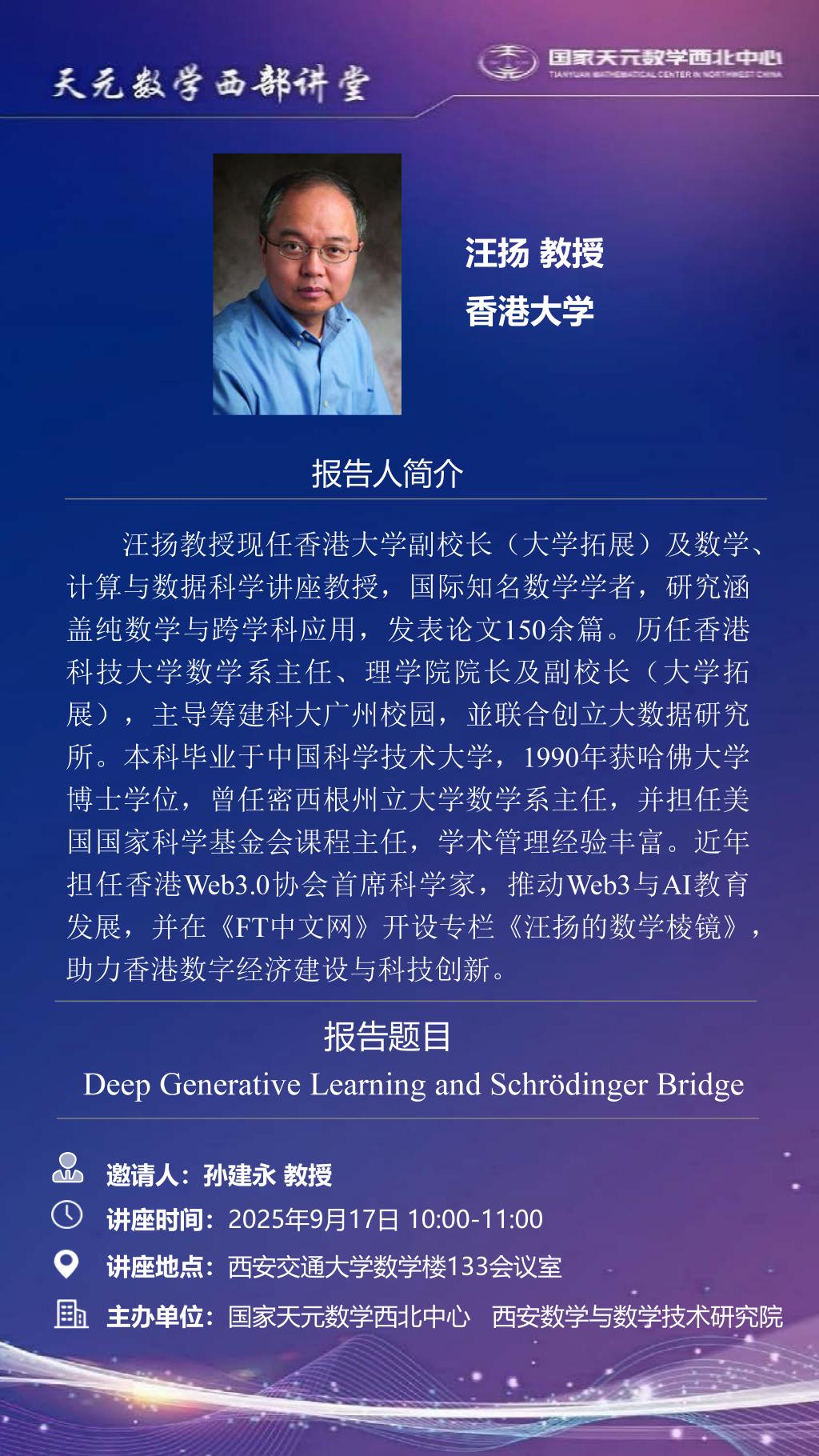 【天元数学西部讲堂】香港大学汪扬教授学术报告通知