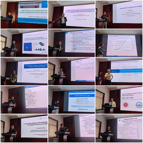 研讨会特邀香港理工大学乔中华教授、同济大学孙树瑜教授、复旦大学高卫国教授、香港中文大学钟子信教授、哈尔滨工业大学马坚伟教授等十五位资深专家和一线学者作了精彩的学术报告。他们分享了最新的科研进展与研究思路,并与现场学者就报告内容展开了深入交流与探讨。报告主题涵盖了多个前沿方向,包括构建保持物理特性与数学结构的深度学习方法;针对问题特性设计网络结构以提升模型逼近能力与训练效率;利用深度学习构建跨尺度物理模型及高效算法等。21日下午,会议围绕“AI与科学计算的创新融合及未来趋势”主题组织了自由讨论环节。与会专家结合各自的科研实践和技术发展路径对比,分享了对该议题的深入思考与独到见解。