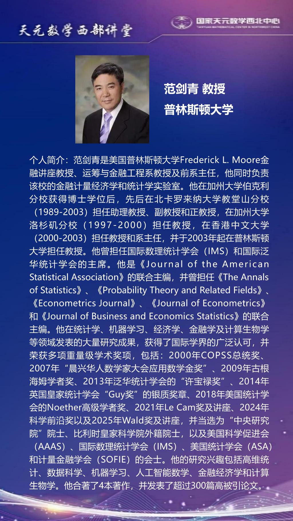 【天元数学西部讲堂】普林斯顿大学范剑青教授学术报告