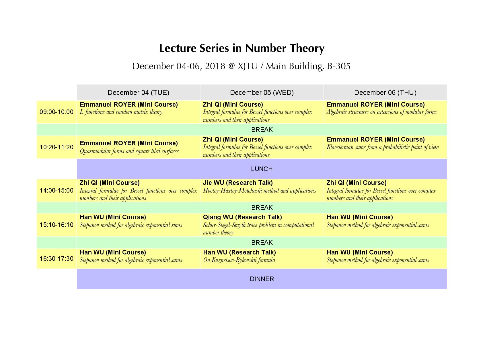 【数论系列活动18-11】Lecture Series in Number Theory, 2018.12.04-06