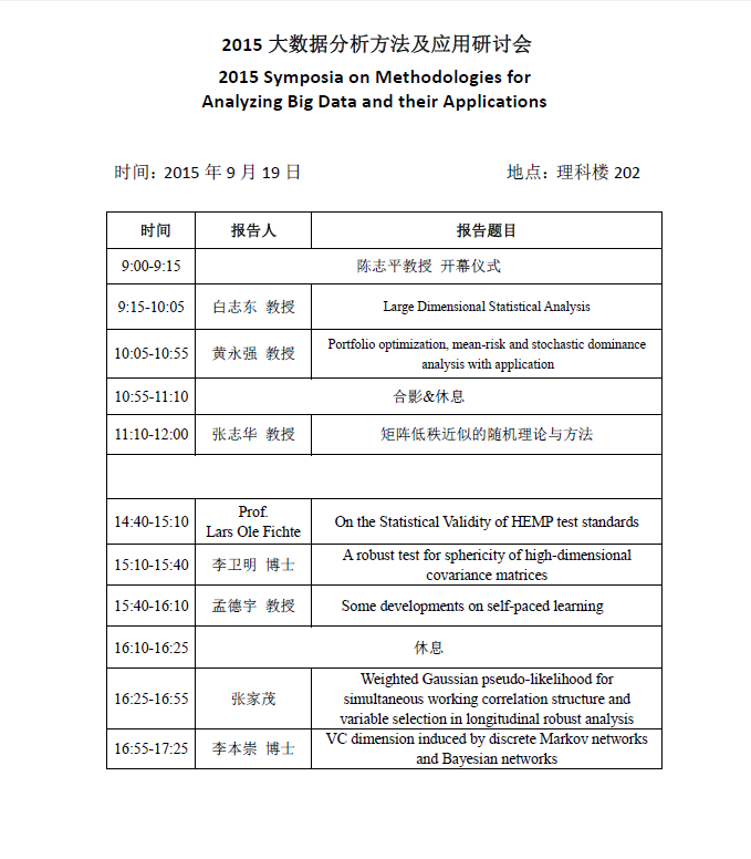 2015大数据分析方法及应用研讨会会议日程