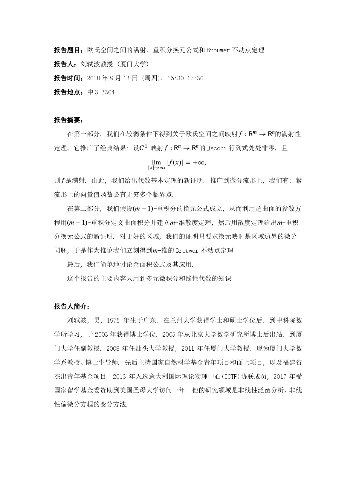 厦门大学刘轼波教授学术报告通知