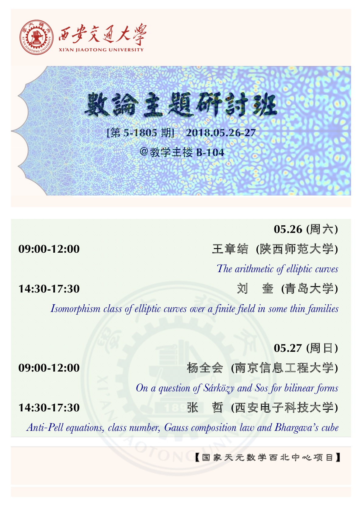 数论主题研讨班(第5-1805期)